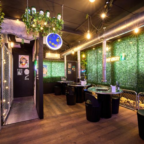 開放的な空間ながら、隣の席との間隔はゆったりと確保◎プライベートな会話も気兼ねなくお楽しみいただけます。チャミスルの空き瓶でできた照明は写真におさめたくなる可愛さです♪女子会やデートはもちろん、韓国好きの友達とのお食事にもピッタリな空間です。ご来店お待ちしております!