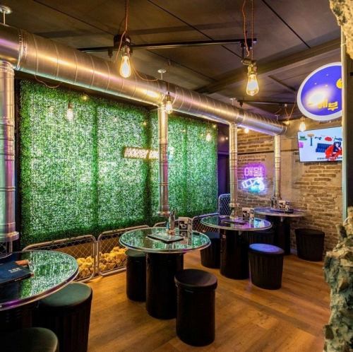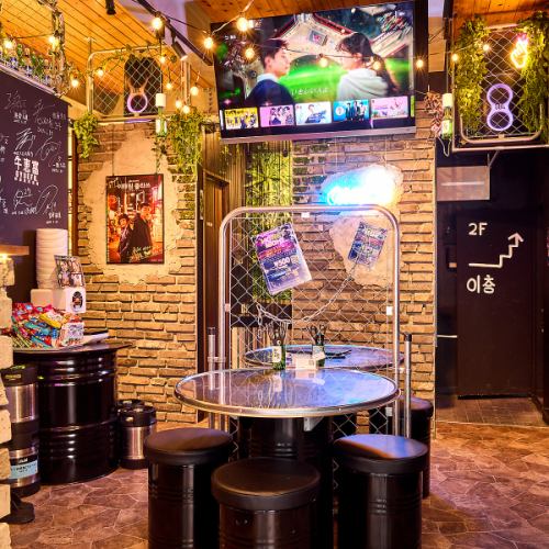 ネオンが光る看板や、ドラム缶を再利用したようなテーブル、ステンレスの排煙ダクトなど、本場韓国の居酒屋をそのまま再現!まるで韓国の屋台にいるかのような雰囲気で、SNS映えもばっちり◎K-POPアーティストの映像やBGMが流れる店内で、お食事をお楽しみください♪